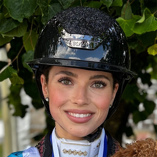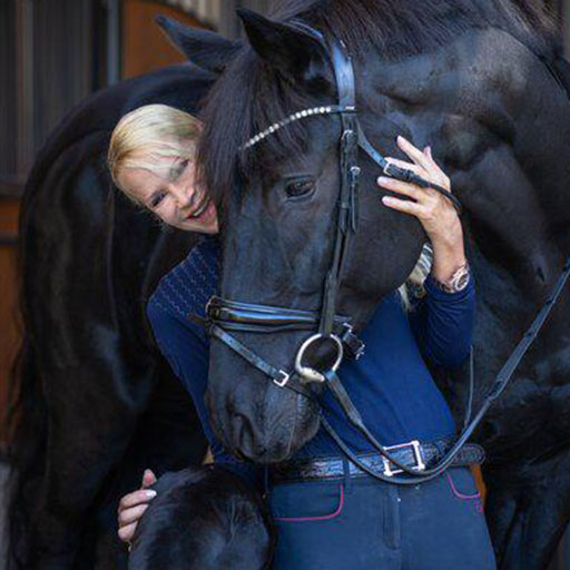 Geboren 1971 in Düsseldorf, studierte Grafik-Design an der FH Krefeld und trainierte 20 Jahre Dressursportpferde bis zur Klasse Grand Prix. Ihre Liebe zum Reitsport entdeckte sie mit 6 Jahren beim Pony-Reiten und hat sich seitdem durch viel Eigenengagement zur Grand-Prix-Reiterin weitergebildet. Als Sängerin war sie außerdem schon früh mit der Musik verbunden. Durch die Idee, Kürmusik selbst zu produzieren, ließen sich dann später Musik- und Reitleidenschaft erfolgreich verbinden in der Zusammenarbeit mit einem lieben Musiker-Freund (Tontechnik & Schlagzeug) sind seitdem unzählige erfolgreiche Kürmusikproduktionen entstanden. Nach dessen plötzlichen Tod im April 2020 übernahm der Gitarrist und Musikproduzent Norman Jonas diesen Part.